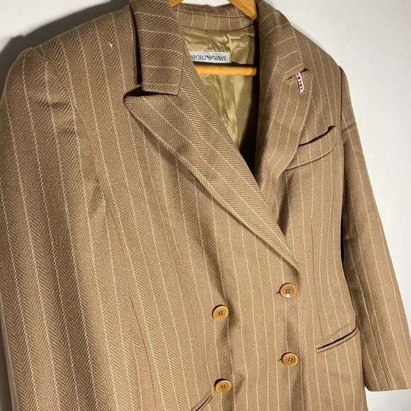Emporio Armani Womens Blazer Pinstriped Suit Jacket Italy Brown Sz 40