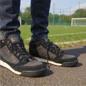 Stylish Emporio Armani EA7 sneakers. Black and gray design. Ideal for casual wear.