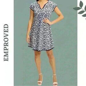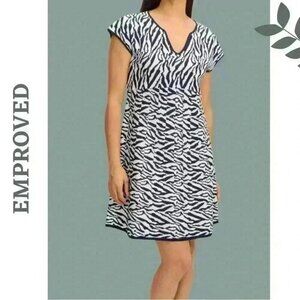 Emproved Animal Print Shirt Sleeve Knit Mini Dress Navy White Sustainable