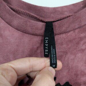Empyre Tie Dye Rose Graphic Tee with Laced Sides Burgundy Black Size Medium