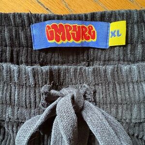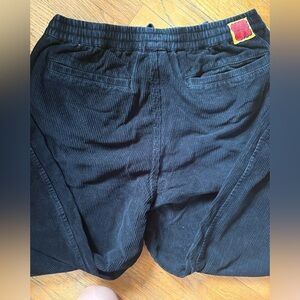 These Johnny Empyre skate pants come in a corduroy construction made of 100% cotton and features a blue colorway with the brand label woven along the back waistband. These pants have an elastic waistband with an adjustable drawstring for snug closure and