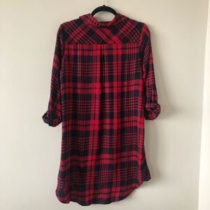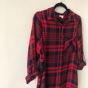 En Creme Plaid Boyfriend Mini Shirt Dress