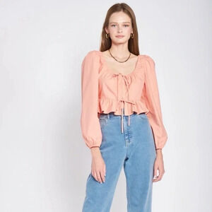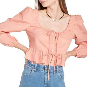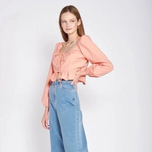 En Saison Cropped Peplum Ruffle Blouse | Coral | Small | Milkmaid, Cottagecore