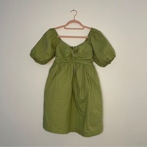 En Saison Green Puff Sleeve Cotton Mini Dress | Ruched Bodice | Size S
