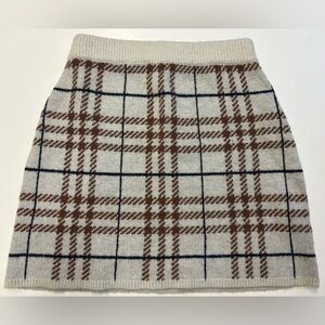 En Saison elastic waist mini sweater skirt w plaid detailing women's size Small