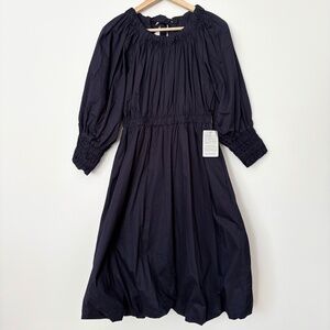 Smocked cuffs highlight the puff sleeves of a picture-perfect dress made from breathable cotton. Light bubble hem gives it an A line silhouette, partially lined.