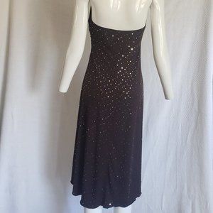 EnFocus Studio Women's Dress Brown & Gold Halter Tie Stretch Knit High Low Dress