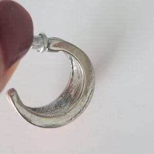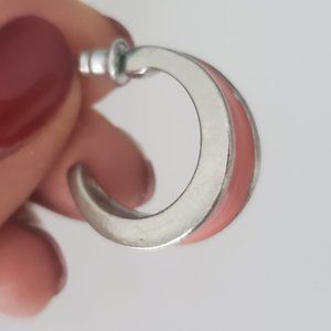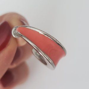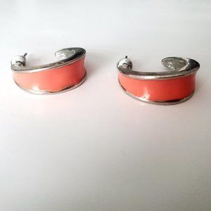 Enamel Earrings Silvertone Coral Small Open Loop Art Deco Coastal Retro Vintage
