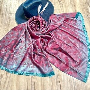 ✨ Enchanting SILK Pink and Teal SCARF/body wrap w Gypsy southwestern vibe