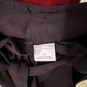 Canadian designer Encircled Cropped Paper Bag pants, in black. Stretch fabric with waist tie. Never worn. Waist flat (unstretched): 15.5", (stretched) 18". Rise: 15". Leg: 22". Non-smoking, non-pet home.