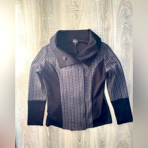 Encore Zip Up Jacket with button up close. Turtle neck style once fully done up.