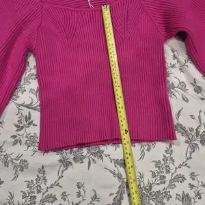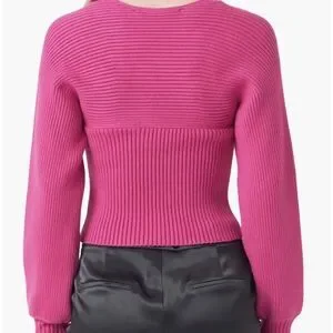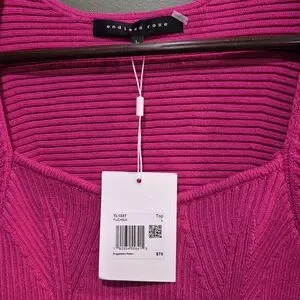 Vibrant fuchsia ribbed knit top. Features a stylish design. Ideal for a bold look.