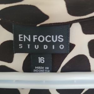 Preowened, Enfocus Studio Midi Down dress Brown and White Giraffe print dress US 16,preloved with care, no hole or scratches.