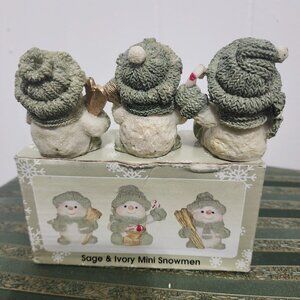 Absolutely adorable "Sage & Ivory" mini snowmen by English Butler. Excellent condition. Approximately 3" tall. Set of 3