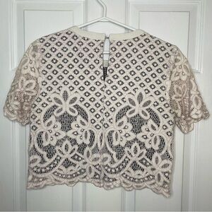 English Factory Lace and Gingham Cropped Blouse Small