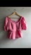 This elegant pink top features stylish puff sleeves and a flattering peplum design. Mixed fabrics. Side zip.