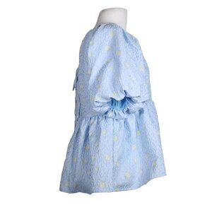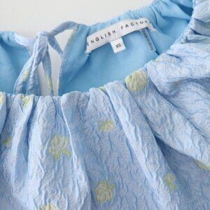 English Factory Women's XS Blue Empire Waist Top Jacquard Floral Balloon Sleeves