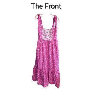 English Factory sleeveless tie-shoulder pink/white lined maxidress size M
