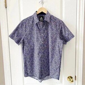 English Laundry Button Up Shirt Short Sleeve Stretch Fitted Casual Blue Medium