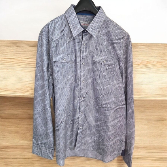 This English Laundry shirt in a classic gray hue offers a timeless casual style with its button-down design and long sleeves. Crafted from a slightly textured fabric, it provides a comfortable fit perfect for everyday wear. Length 31" Width 25" Sleeves 27"