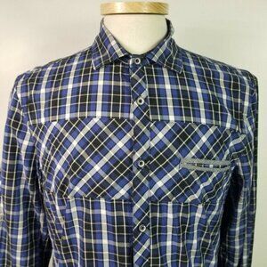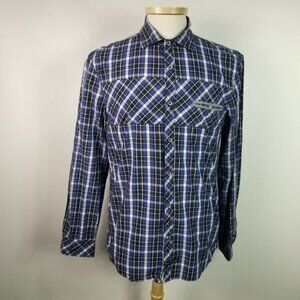 English Laundry Large Multi Color Plaid Button Front Mens Shirt 100% Cotton.
