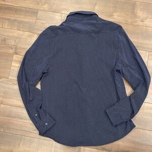 English Laundry M cotton long sleeve button down in navy with polka dots