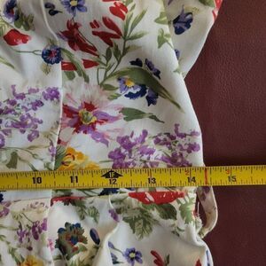 Gorgeous floral retro style cotton sun dress with sweetheart neckline and halter tie straps, sash waist belt, and layered swing skirt. EUC