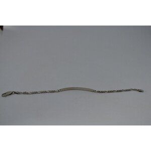 Cute figaro chain bracelet with an engravable silver bar. The whole thing is 4.9 grams and is 7" long. This is customizable, but not by me - I do not do engraving. Light scuffs from age that could be polished out. Marked Italy.