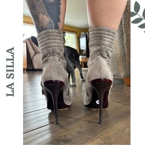 Enio Silla For Le Silla Grey Suede Platform Ankle Boots Stilletto Buckle Size 7