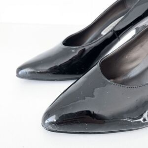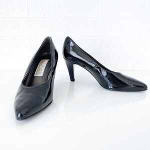 Enrico Fratelli Womens Patent Leather Pointed Toe Slip-on Pumps Black Size 37.5