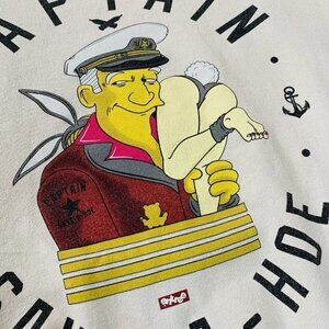 Entree Ls Lifestyle Sweater Mens Large Captain Save A Ho* Simpsons Beige Pockets