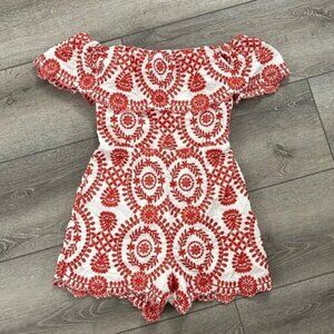 Entro Red Embroidered Off-Shoulder Romper size 4