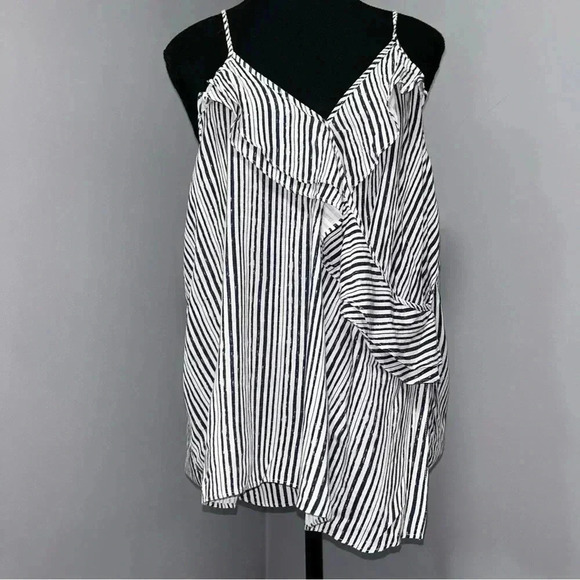 Striped Entro Tank Size Large Adjustable Straps Navy & White 70% Cotton 30% Linen