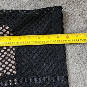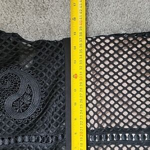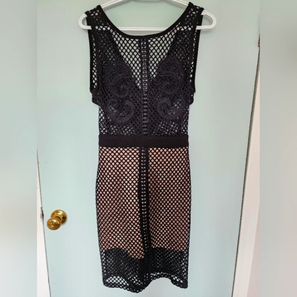 Sheer mesh top with a nude skirt underlay on the bottom.