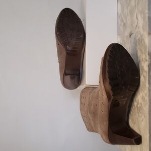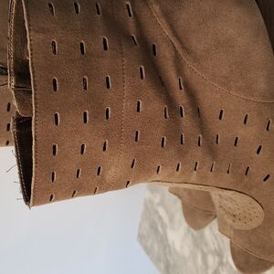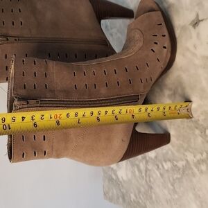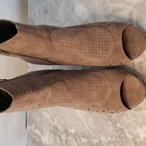 Envy Brown/Beige Throttle Suede Leather Peep-Toe Bootie, Size 9