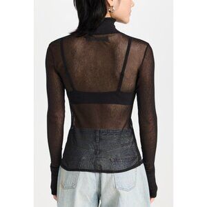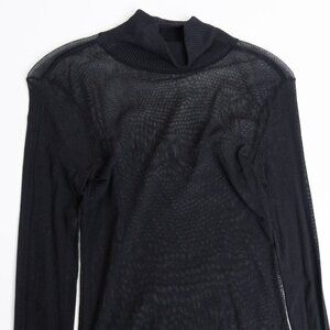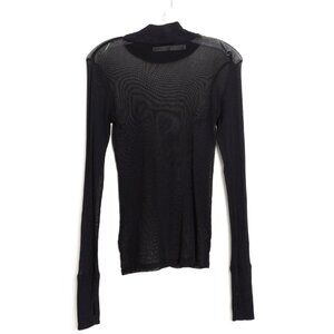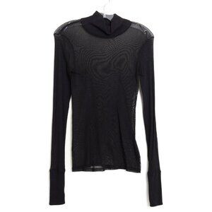 Enza Costa Cotton Mesh Cuffed Turtleneck Top Black Small