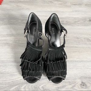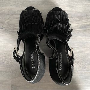Enzo Angiolini Black Suede Fringe Wedges Shoes