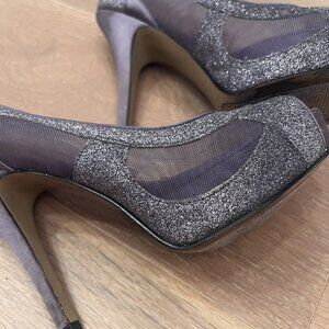 Enzo Angiolini Purple Peep-Toe Sparkling Satin Cutout Pumps. 6.5