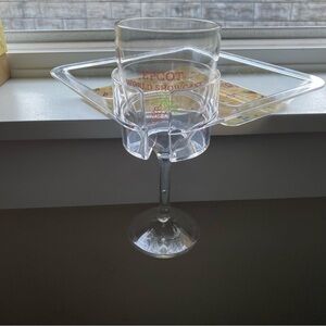 25th Anniversary Taste Around the World Epcot Food and Wine platter for carting those delicious treats around after grabbing them at a booth. Wine Glass for trying out those drinks sits snugly in platter cup holder so you can hold both in one hand while you snack with the other. Both are in great condition, came directly from Epcot, are made of plastic and are 8 inches in length. Must be hand washed.