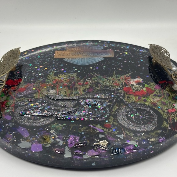 Epoxy Resin Art of Harley Davidson Motorcycle Tray w/Handles. Biker Decor.