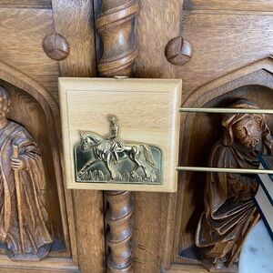 The brass is good quality. The wood appears to be oak. The rack has some weight to it.