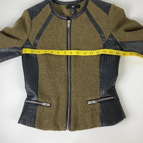 Punk grunge black olive green quilted faux Leather riding pea coat size extra small