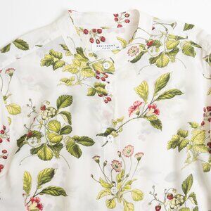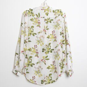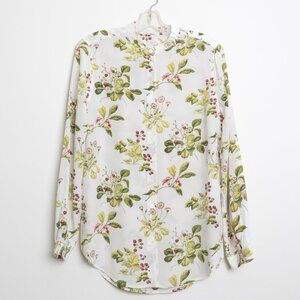 Equipment 100% Silk Blouse White Floral Botanical Print Long Sleeve Small