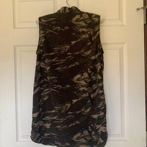 Calling all fashionistas! Master the edgy and cool look with this sleeveless, silk button-up top. You'll look good, feel good, and turn some heads.