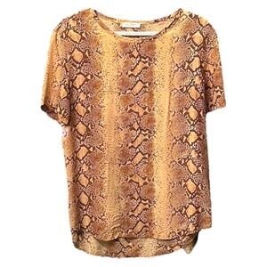 Lovely python print 100% silk Equipment Femme Riley t-shirt blouse. Perfect for teaming with jeans and wedges for a relaxed look that is bound to turn heads. Or easily dress it up for work or a night on the town. Its soft silk and loose fit make it comfortable to wear whatever the occasion. Beige and brown. In perfect condition.