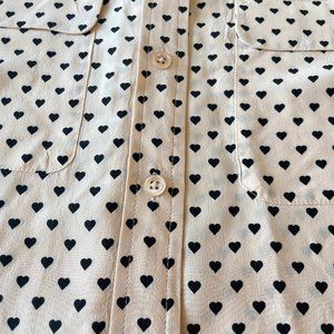 Beautiful Equipment blouse in a fabulous heart print. 100% silk. Gorgeous blush colour, looks great with faux leather pants, skirts and denim. Truly a staple piece in your wardrobe.