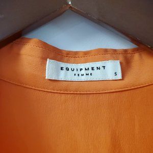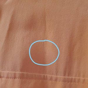 Excellent condition, very little wear. Small spot that is almost unnoticeable above on chest pocket (circled in picture). Will most likely wash out but wanted to note it anyway. Very minor discoloration around collar interior which will probably wash out as well. Neither are noticeable when wearing. Size tag removed 100% silk. Fun bright orange!