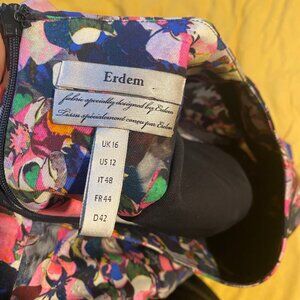 Very elegant dark floral Erdem dress purchased secondhand in 2015/2016. GORGEOUS floral pattern with a black polyester net lining (not super soft but not scratchy/uncomfortable either - this dress is comfortable to wear).