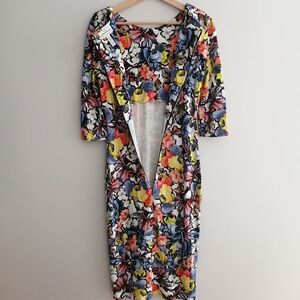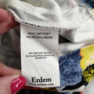 Erdem Wilhelmina Colourful Floral Knee Length Dress Elbow Sleeves US 8