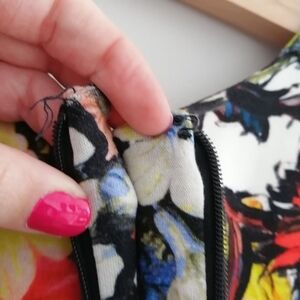 Pre-owned in excellent and clean condition, eye part of the hook and eye closure missing but dress still zips all the way without